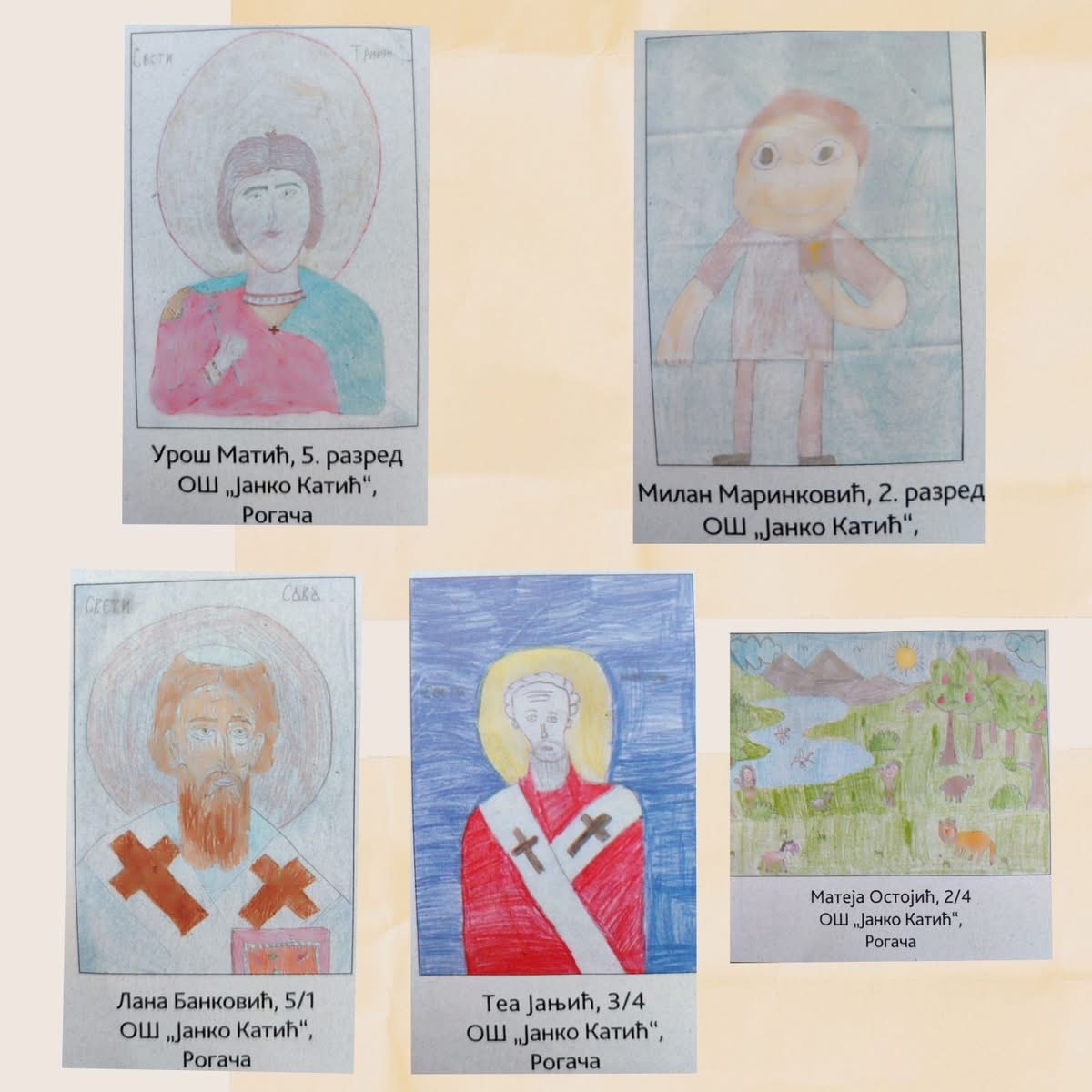 Ученици наше школе су на часовима веронауке цртали радове светаца и библијских догађаја по сопственом избору, показујући креативност и интересовање за духовне теме.