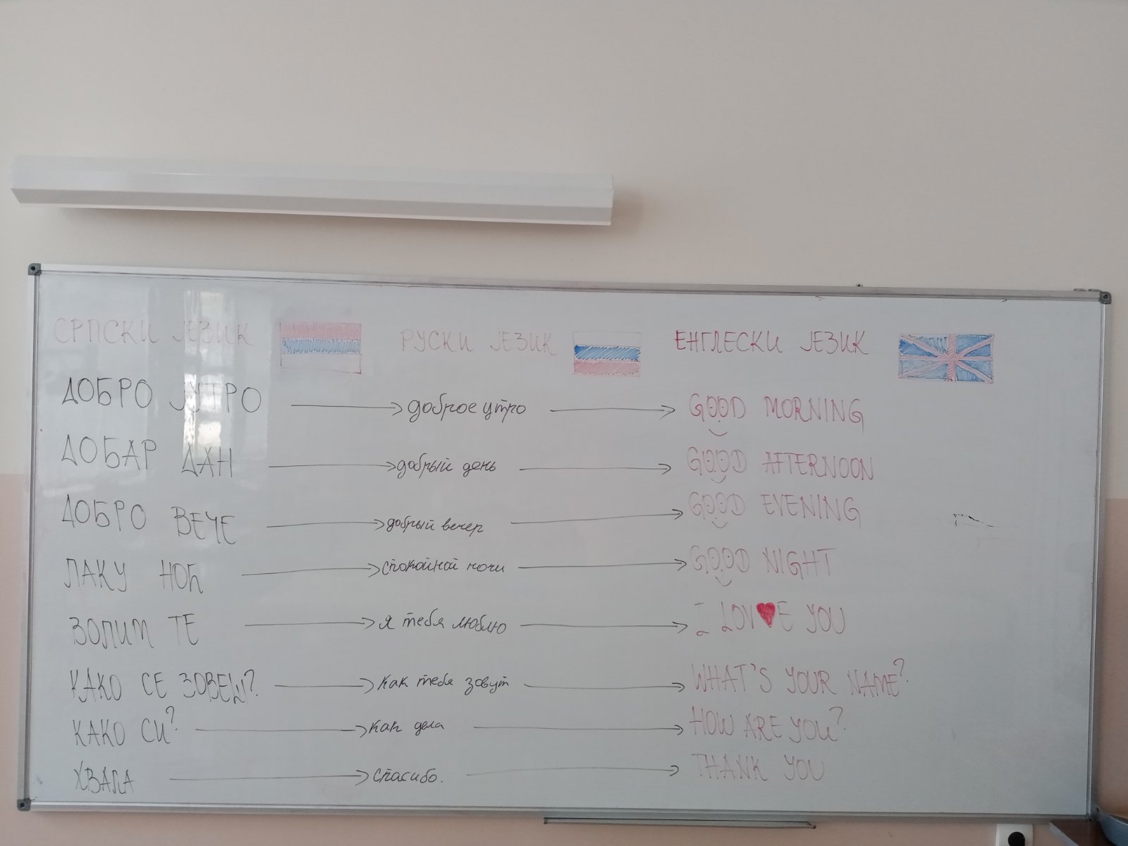 На часу енглеског језика обележен је Светски дан језика, а посебан допринос овом догађају дала је ученица која је изворни говорник руског језика. Она је представила руски језик и културу,поделила неколико основних речи и фраза са осталим ученицима.