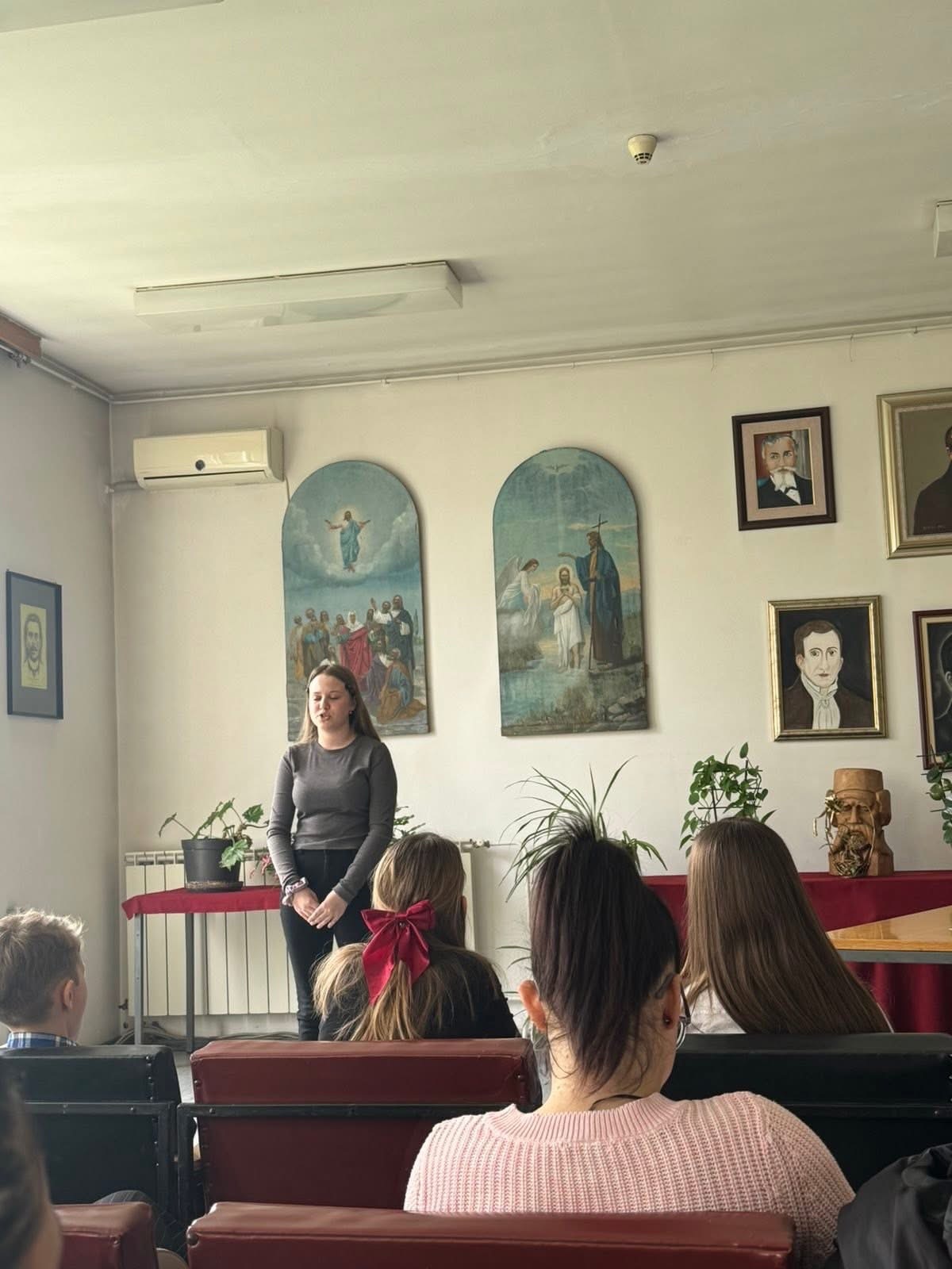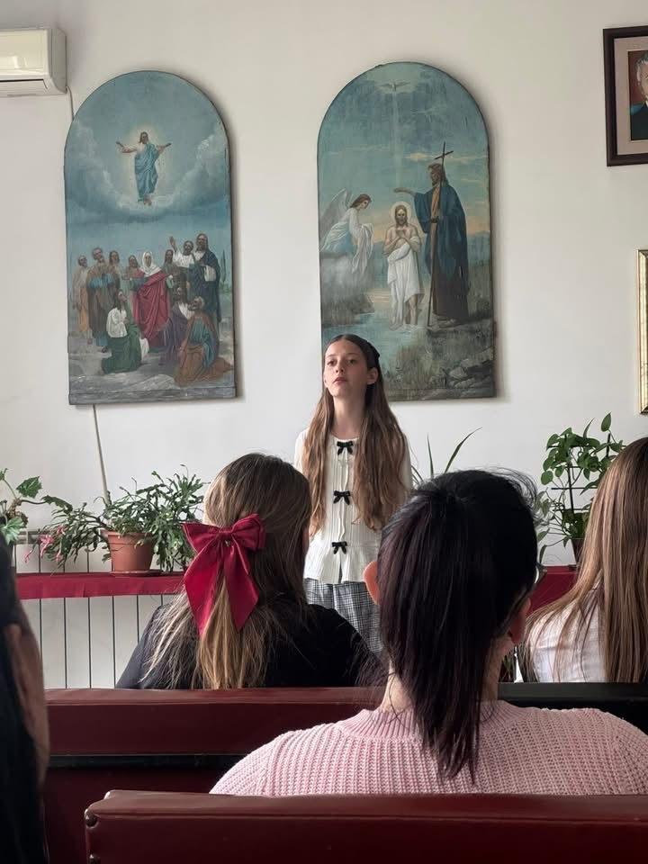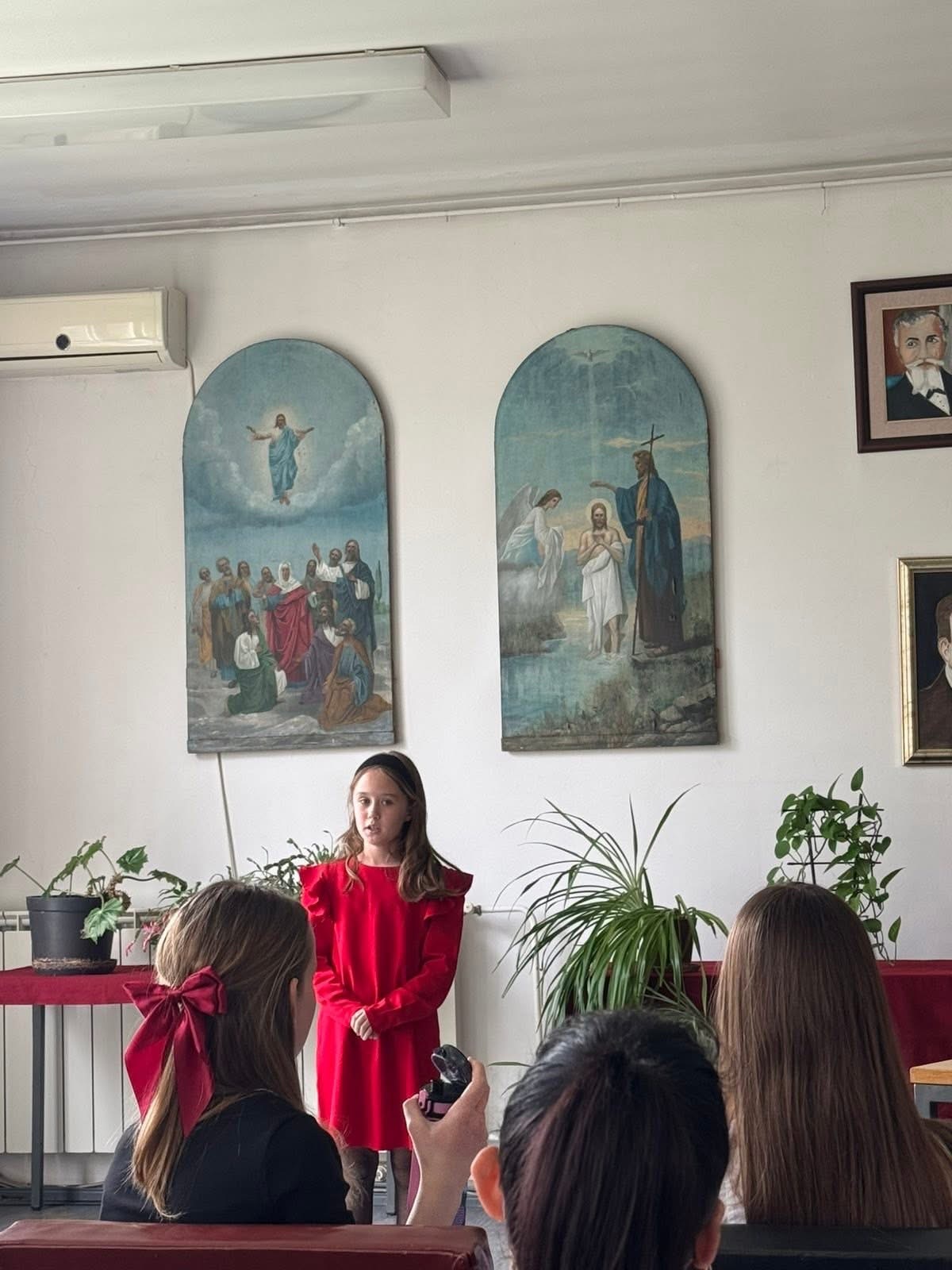 Нашу школу су на леп и достојанствен начин представиле ученице млађих разреда, Искра Јекић (1. разред) и Дуња Богосављевић (2. разред), као и ученице шестог разреда Искра Кричка и Лена Богосављевић.