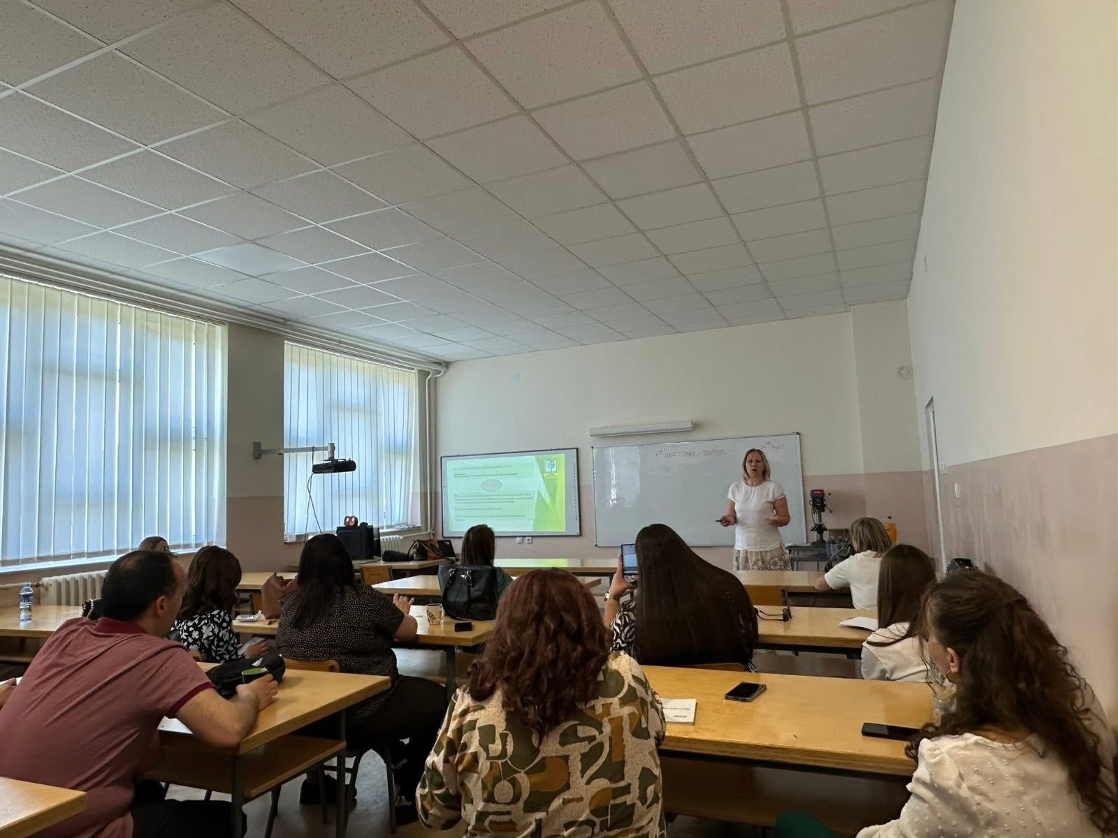 Тема трибине била је развој кључних компетенција ученика кроз предузетништво, активно учење и пројектне активности, са циљем унапређивања наставе и оснаживања ученика за савремене изазове.