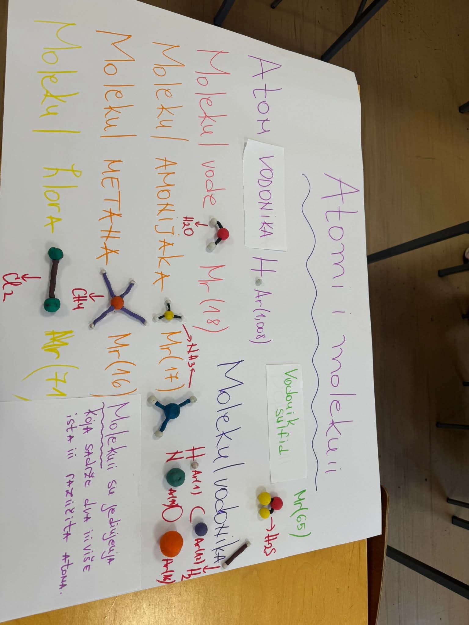 На часу хемије ученици седмог разреда су утврђивали лекције атом и молекул. Кроз практичан пример увидели су грађу атома, молекулску и атомску масу. Моделе су правили од пластелина.
