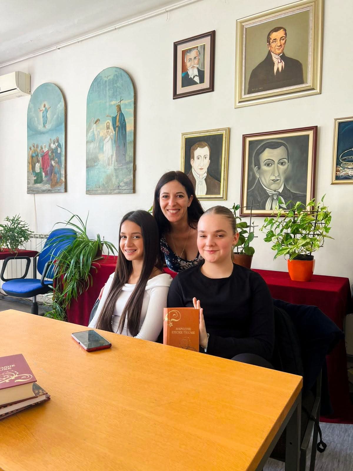 У просторијама библиотеке Милован Видаковић у Сопоту нашу школу су на квизу представљале ученице 8. разреда Тијана Јањић и Анђела Жујевић. Поносни смо на њихову посвећеност српском језику и ентузијазму који свакодневно показују.