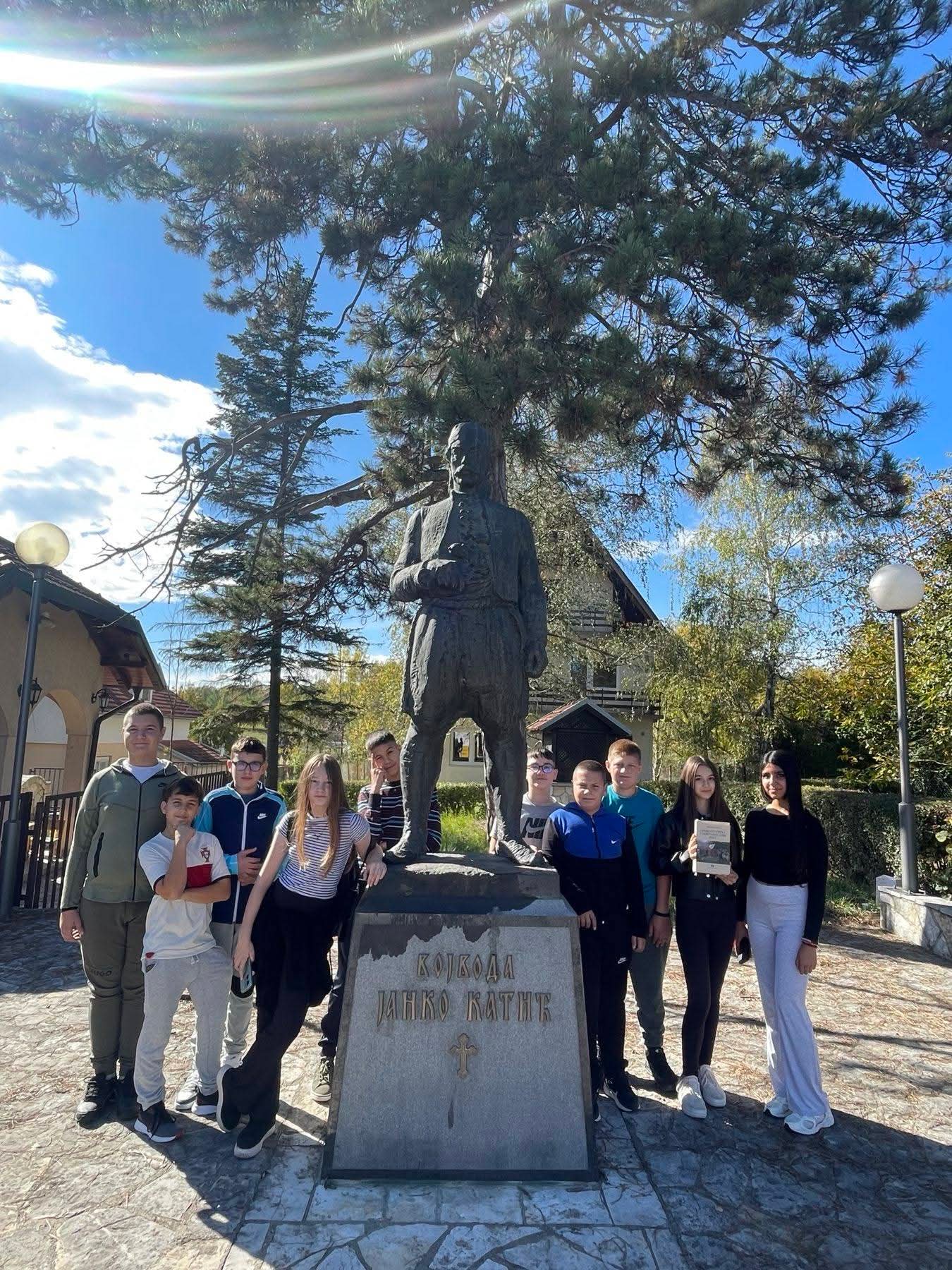 Час историјеДатум: 31. Oktobar 2025 15:49 Категорија: НовостиДанас су ученици седмог разреда почели да обрађују Српску револуцију. Том приликом су заједно са наставницом историје посетили цркву у којој су похрањени остаци војводе Јанка Катића. Наставница историје им је у порти цркве одржала час на ком су добили нова знања о српским устаницима, међу којима је и Јанко Катић, по коме наша школа и носи име. |